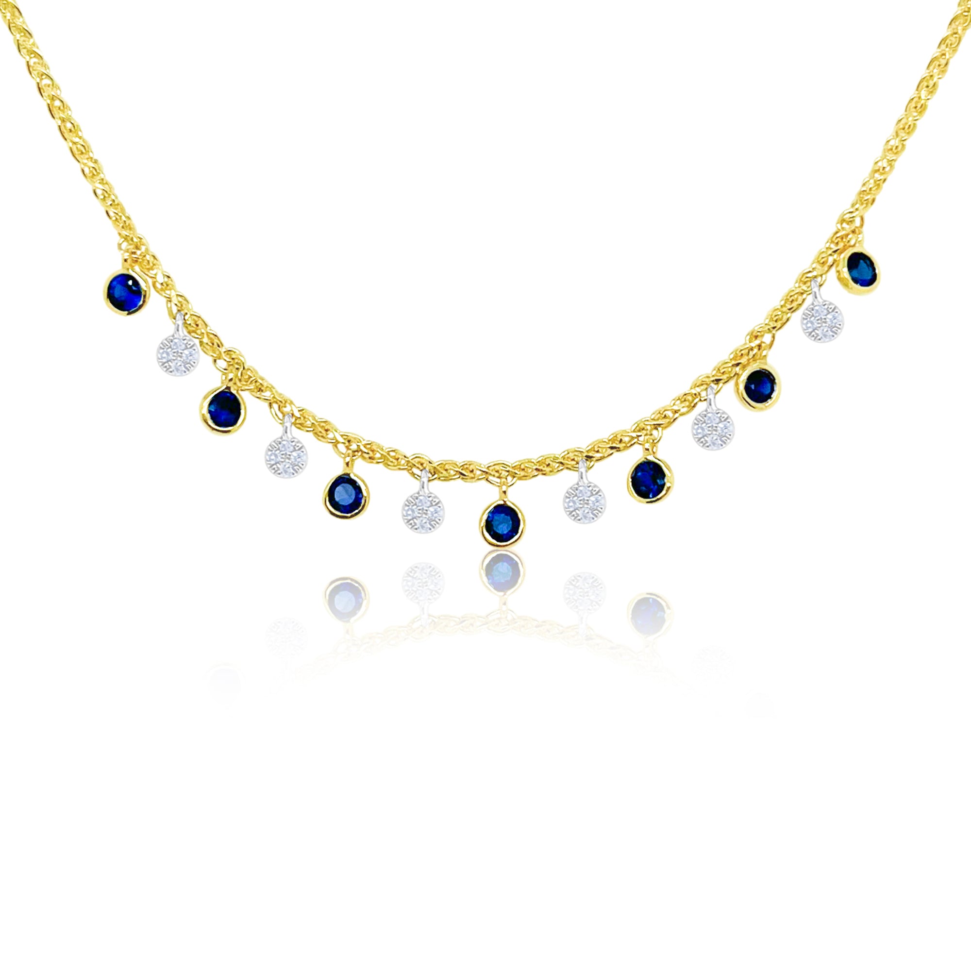 14kt Yellow Gold Blue Sapphire Diamond Chain Necklace