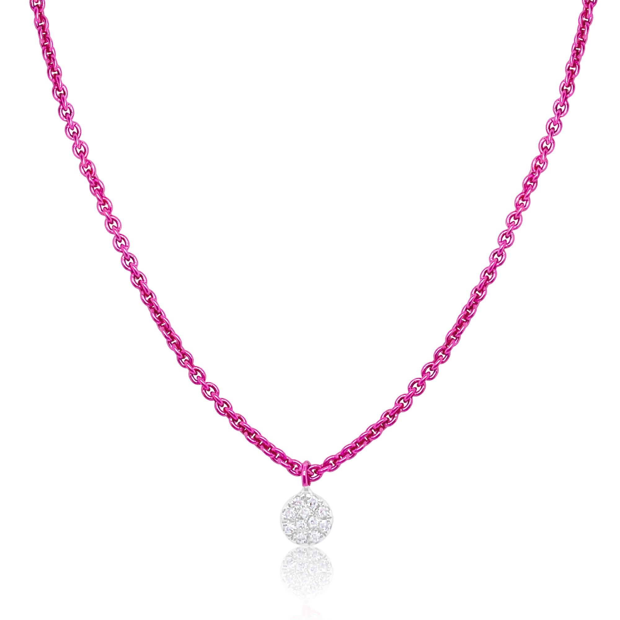 14kt Pink Rhodium Diamond Disc Pendant Necklace