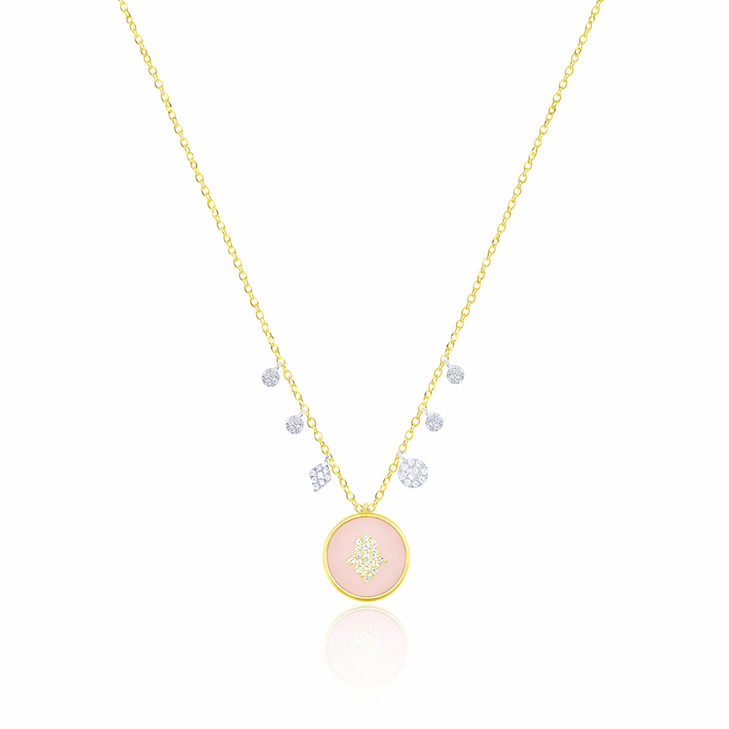 14kt Yellow Gold and Silver Hamsa Pink Opal Necklace