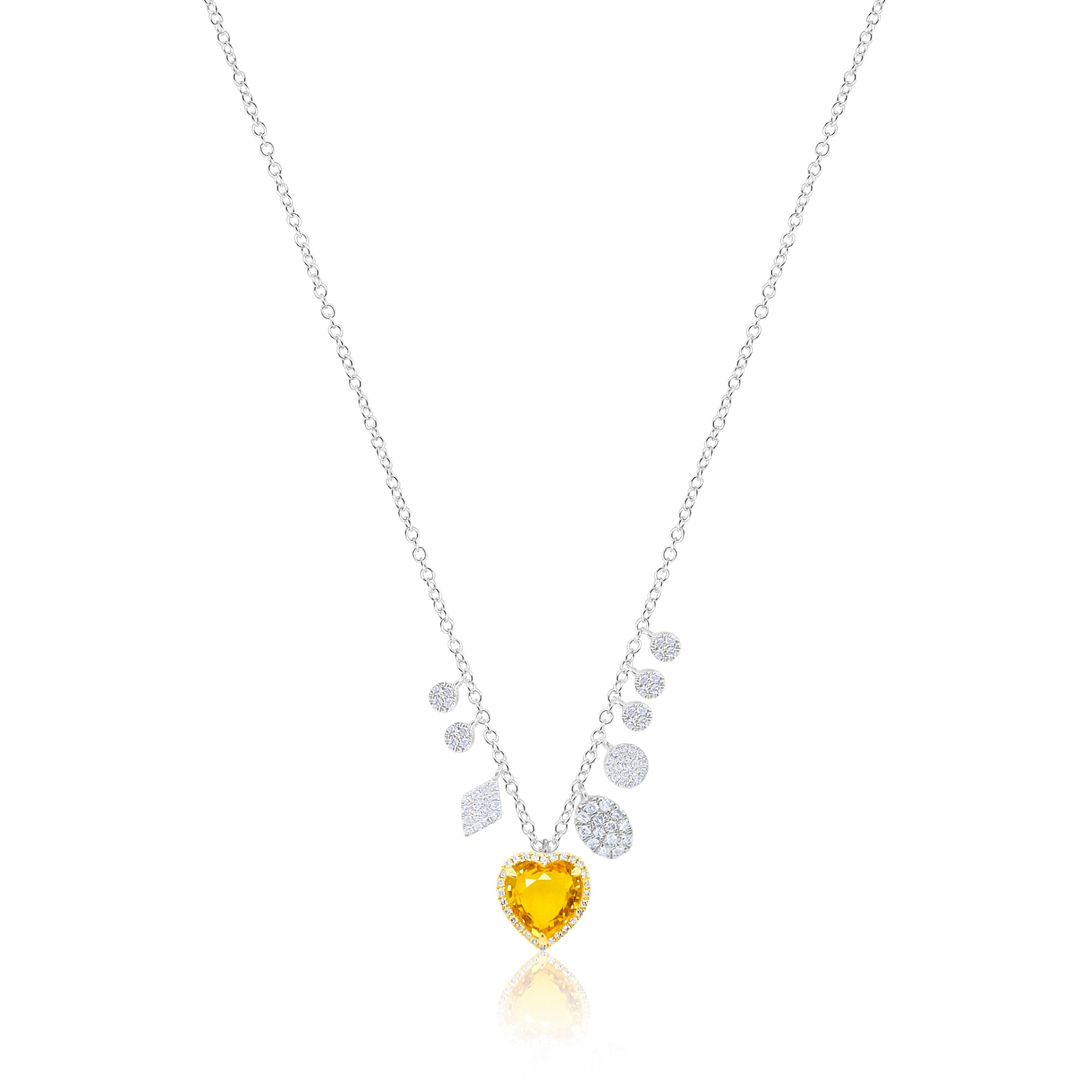 14kt White Gold Yellow Sapphire Diamond Heart Necklace