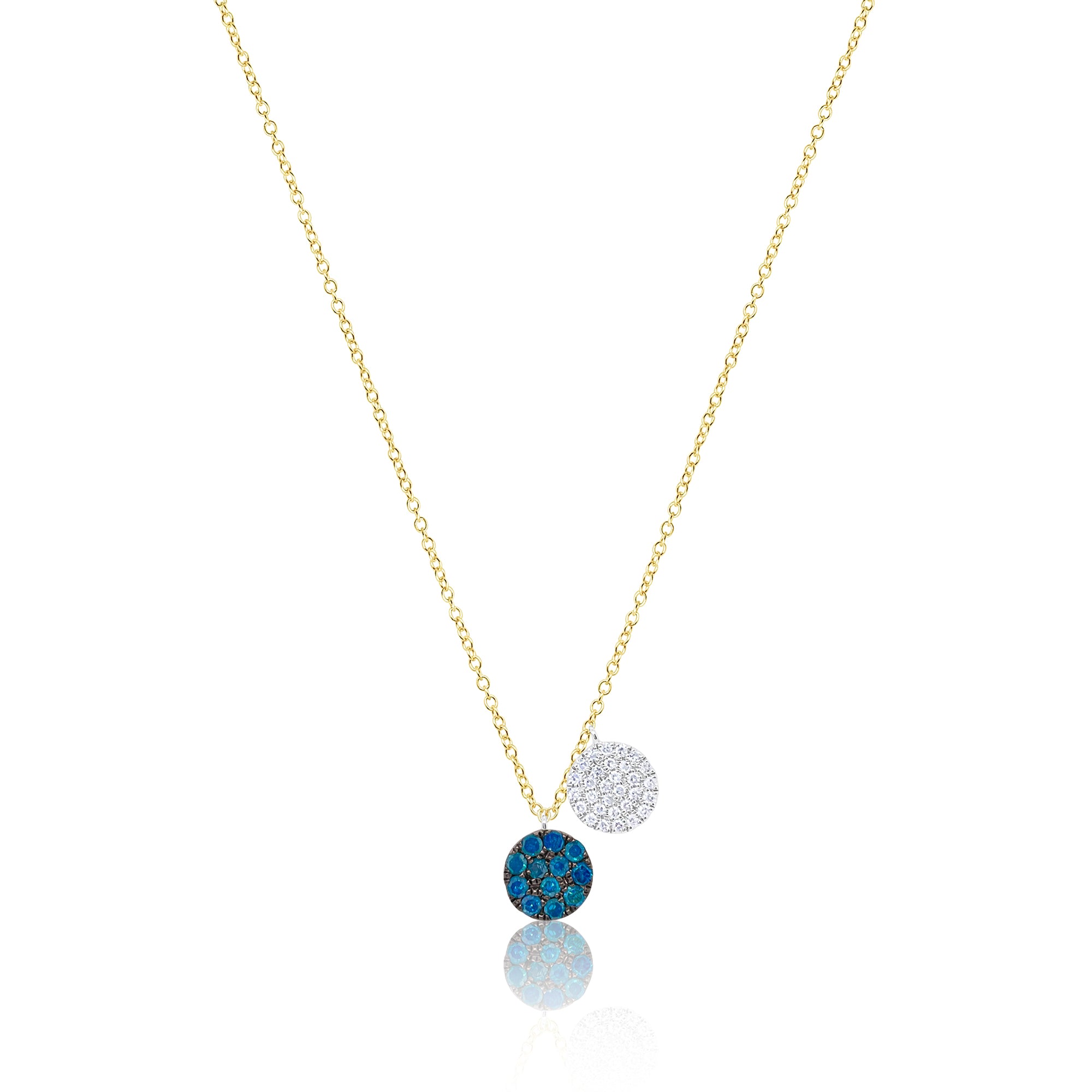 Yellow Gold Blue Diamond and White Diamond Disc Necklace