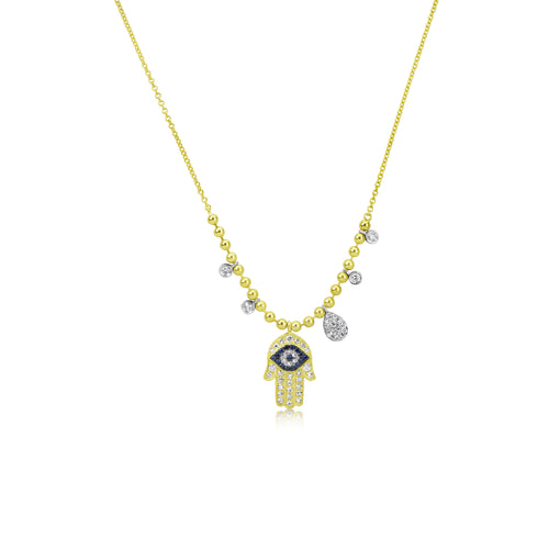 Diamond Hamsa and Evil Eye Necklace