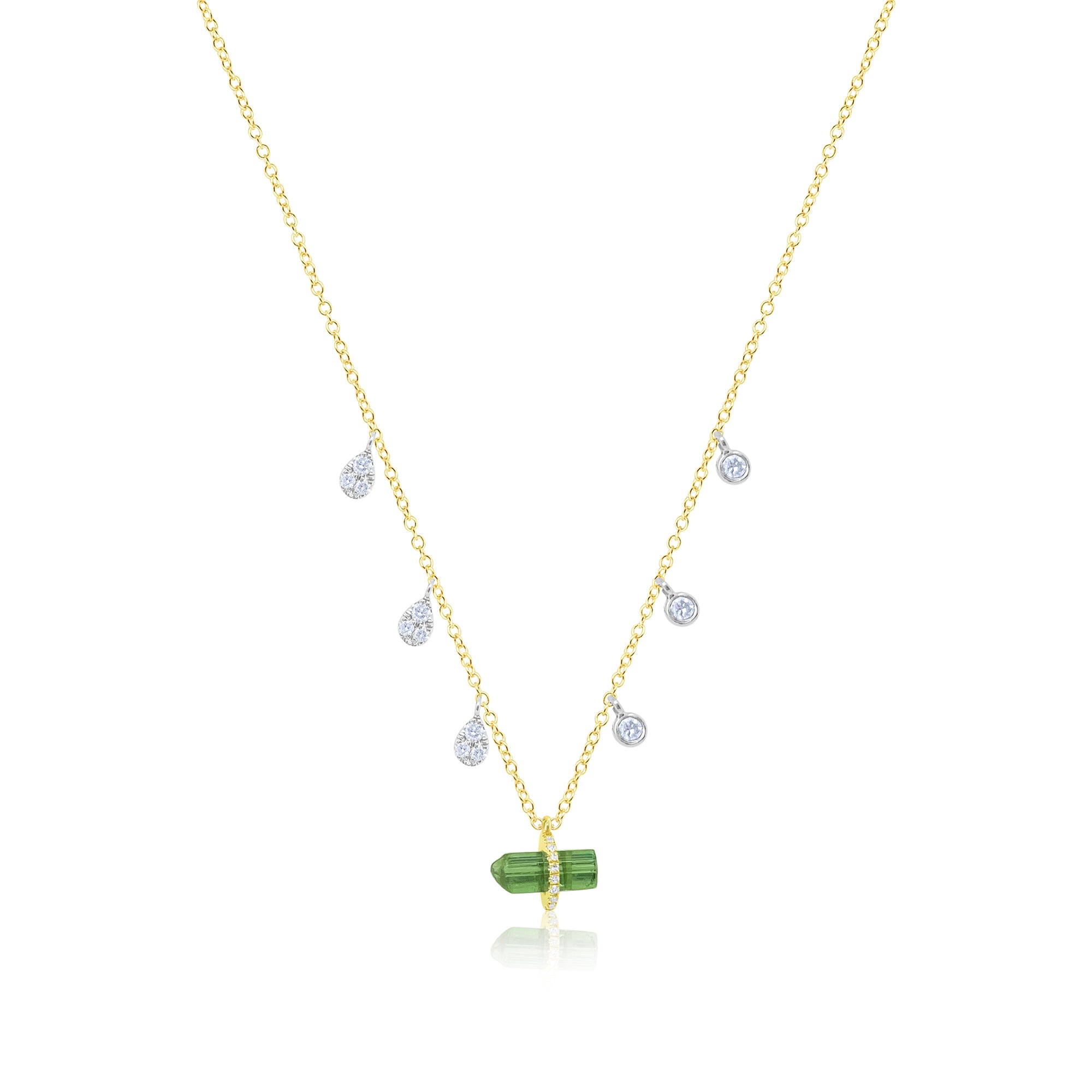 14kt Yellow Gold Diamond and Green Tourmaline Necklace
