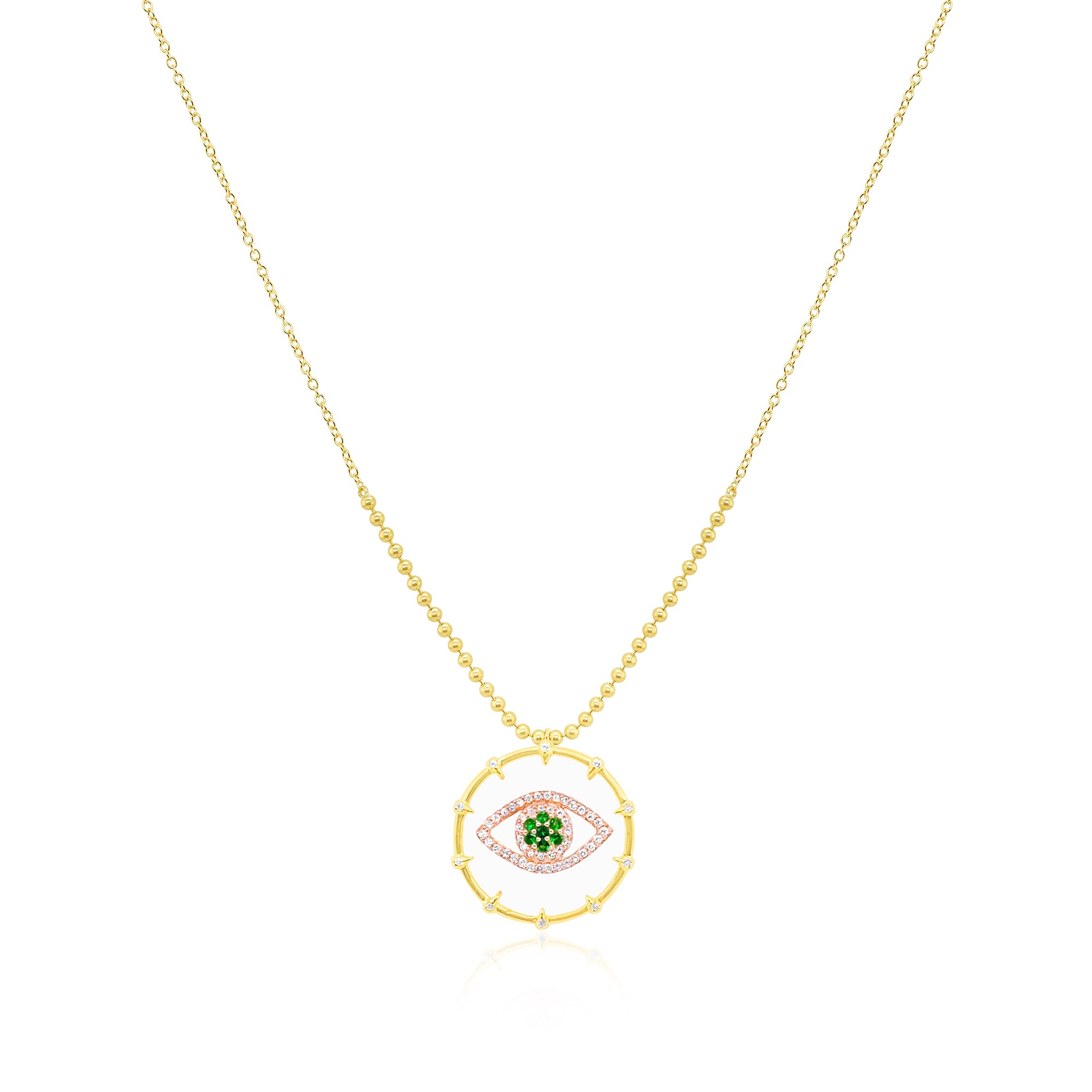 14kt Yellow Gold Diamond and Emerald Eye Design Necklace