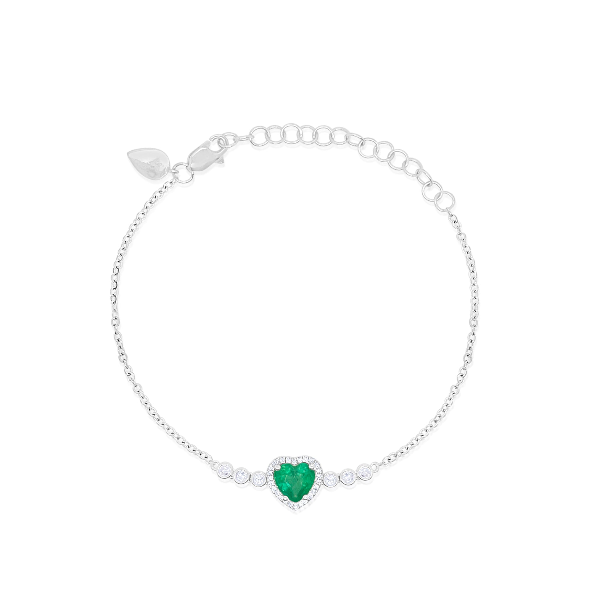 This elegant bracelet features a heart-shaped emerald set in 14 karat white gold, combining timeless beauty with refined craftsmanship.