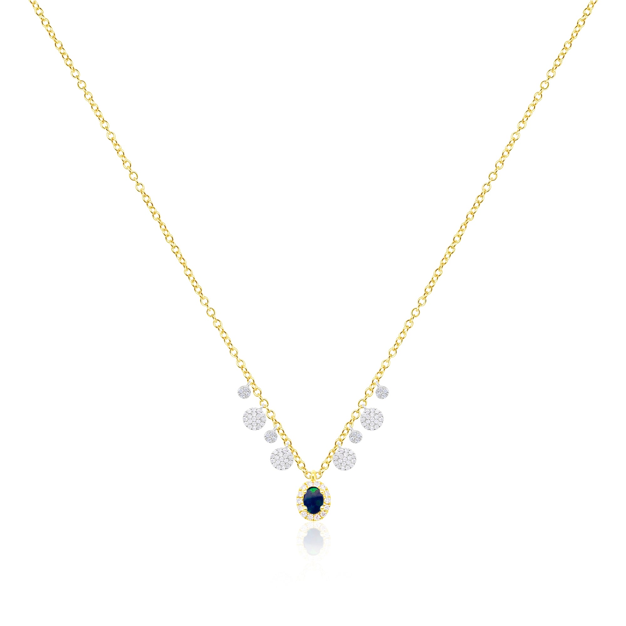 14kt Yellow Gold Diamond and Blue Opal Pendant Necklace