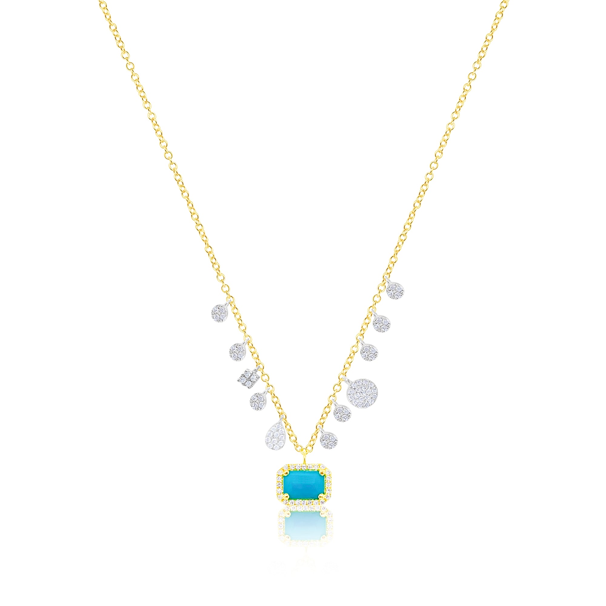 14kt Yellow Gold Diamond and Turquoise Fringe Necklace